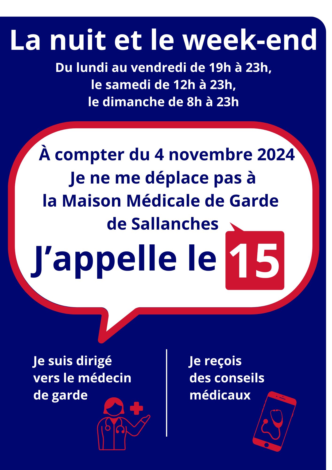 La Maison Médicale de Garde : à compter du 4 novembre 2024, vous devrez contacter le 15 pour planifier une consultation,
