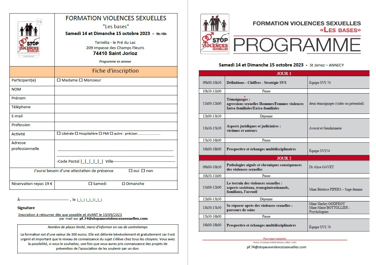 Formation « Stop aux violences sexuelles », le 14 et 15 octobre 2023 à St Jorioz. |