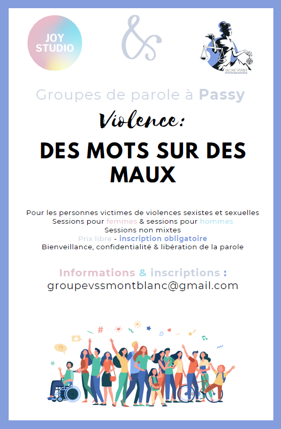 Des groupes de paroles pour les personnes majeures qui ont été victimes de violences sexistes et sexuelles (dans le couple, inceste, harcèlement, ...).